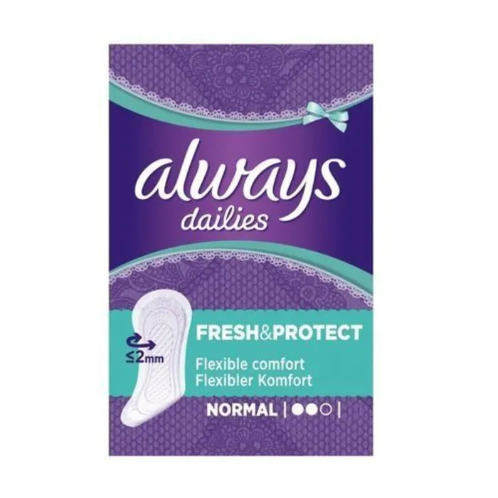 أولويز ديلي فريش سنِت نورمال فوط يومية - 20 قطعة | لمسة منعشة وحماية فائقة \n💖 حماية يومية برائحة منعشة! تمنحكِ فوط أولويز ديلي فريش سنِت نورمال تصميمًا مريحًا مع امتصاص سريع للحفاظ على جفافكِ طوال اليوم \n✅ خفيفة ولكن بقدرة امتصاص عالية | ✅ مناسبة لجميع أنواع البشرة | ✅ إحساس بالنظافة والانتعاش الدائم