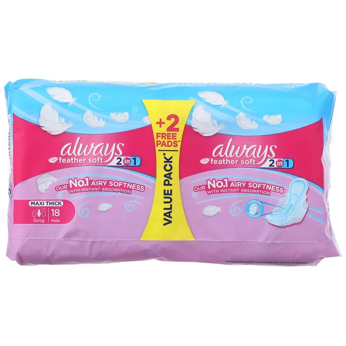 أولويز فيذر سوفت 2 في 1 لونج - 18 قطعة | حماية فائقة وراحة مطلقة \n✨ إحساس فائق بالنعومة والثقة! توفر لكِ أولويز فيذر سوفت 2 في 1 لونج تصميمًا مريحًا بقدرة امتصاص عالية لمنع التسرب وضمان راحة تدوم طويلاً \n✅ مناسبة للبشرة الحساسة | ✅ تصميم مبتكر للحماية المضاعفة | ✅ إحساس جاف طوال اليوم