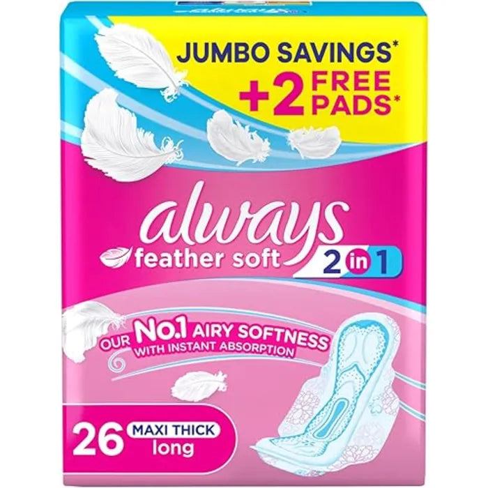 أولويز فيذر سوفت 2 في 1 لونج - 26 قطعة | نعومة فائقة وامتصاص قوي \n🌸 حماية تدوم طويلاً مع لمسة ناعمة كالحرير! توفر فوط أولويز فيذر سوفت 2 في 1 لونج تصميمًا مبتكرًا بامتصاص قوي، مما يمنحكِ راحة مثالية طوال اليوم \n✅ تصميم طويل لحماية مضاعفة | ✅ لمسة ناعمة على البشرة الحساسة | ✅ راحة تدوم حتى 12 ساعة